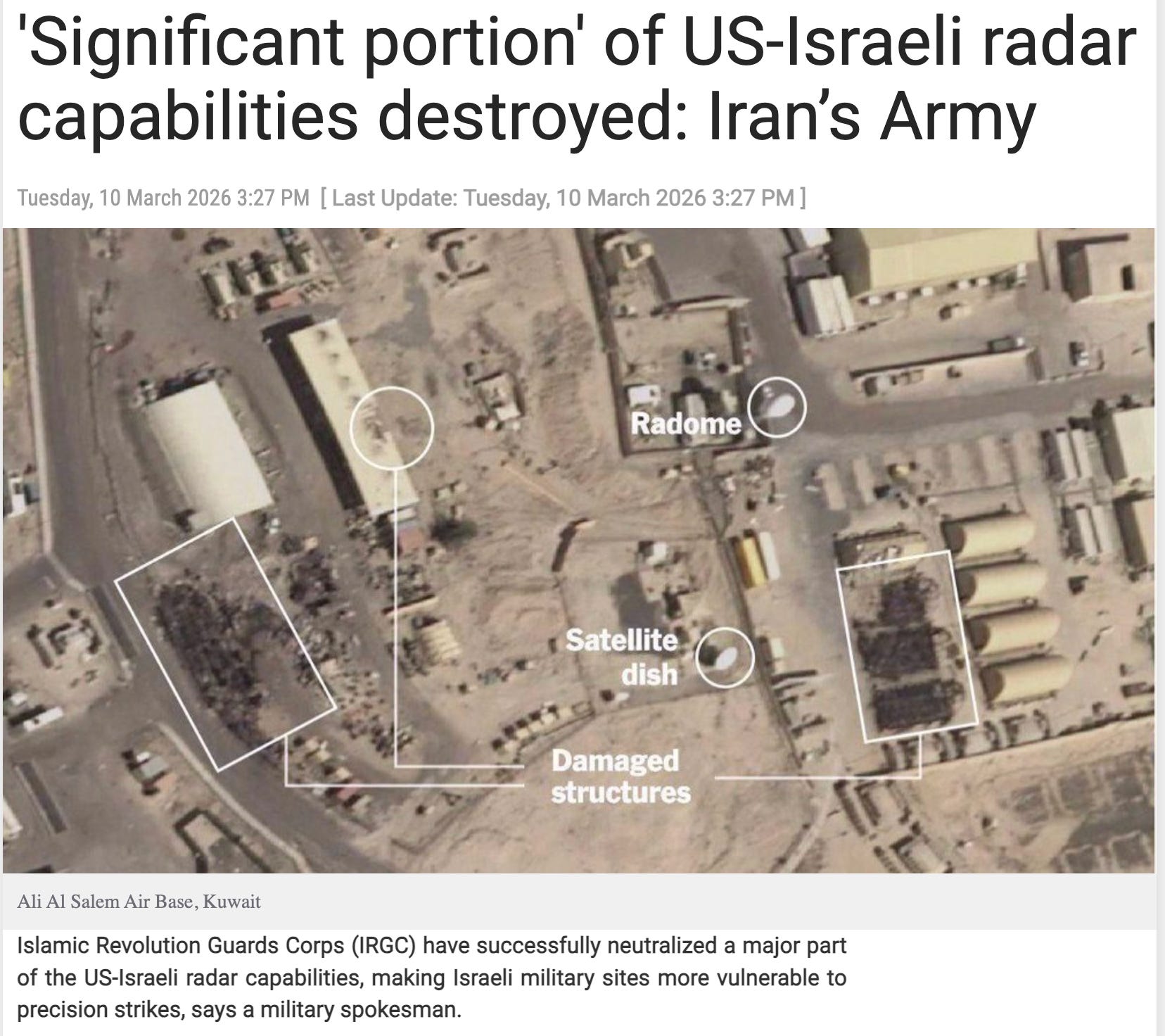 IRGC / Sepah News (Primary Source) — IRGC’s own claims regarding radar destruction. Independent verification of all claimed radar destruction remains incomplete.